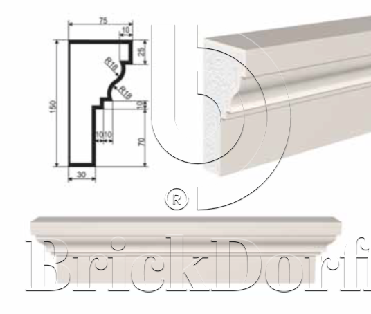 Эта лепнина эластична, без проблем монтируется на изогнутых поверхностях, хорошо переносит усадку здания и отлично окрашивается силиконовыми или акриловыми фасадными красками, не содержащими растворитель и ацетон.