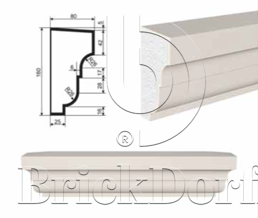 ПОДОКОННИК для Фасада и Интерьера - лепнина, декор из пенополистирола ПВ-160/2 160*80*2000 мм
