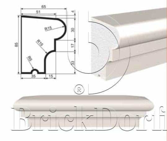 ПОДОКОННИК для Фасада и Интерьера - лепнина, декор из пенополистирола ПВ-85/1 85*65*2000 мм
