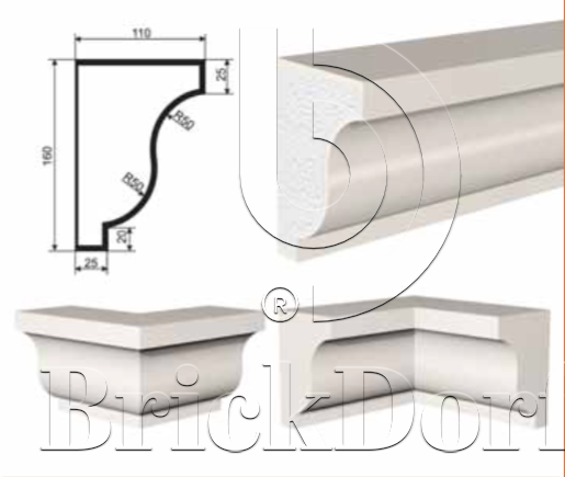 Лепнина для фасада и интерьера из вспененного полистирола с покрытием из эластичной шпатлёвки-штукатурки.