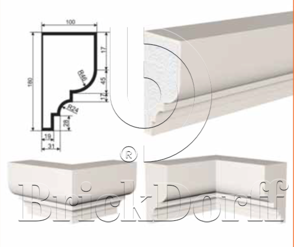 КАРНИЗ для Фасада и Интерьера - лепнина, декор из пенополистирола КВ-180/2 (КС-104) 180*100*2000 мм