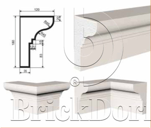 Лепнина для фасада и интерьера из вспененного полистирола с покрытием из эластичной шпатлёвки-штукатурки.