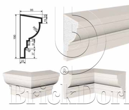 КАРНИЗ для Фасада и Интерьера - лепнина, декор из пенополистирола КВ-190/1 190*95*2000 мм