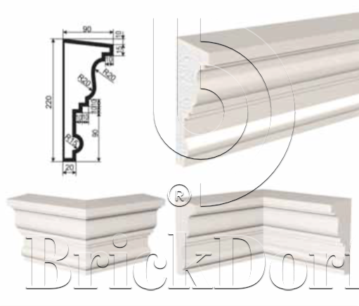 КАРНИЗ для Фасада и Интерьера - лепнина, декор из пенополистирола КВ-220/1 220*90*2000 мм