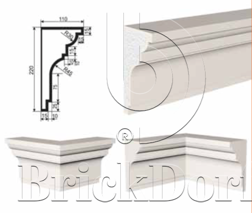 КАРНИЗ для Фасада и Интерьера - лепнина, декор из пенополистирола КВ-220/3 (КС-125) 220*110*2000 мм