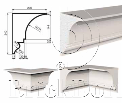 КАРНИЗ для Фасада и Интерьера - лепнина, декор из пенополистирола КВ-240/3 240*200*2000 мм
