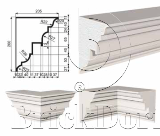 КАРНИЗ для Фасада и Интерьера - лепнина, декор из пенополистирола КВ-260/1 260*205*2000 мм