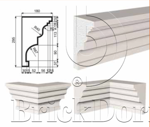 Лепнина для фасада и интерьера из вспененного полистирола с покрытием из эластичной шпатлёвки-штукатурки.