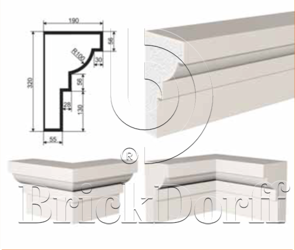 КАРНИЗ для Фасада и Интерьера - лепнина, декор из пенополистирола КВ-320/1 320*190*2000 мм