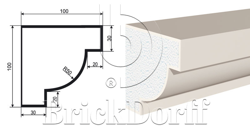 КАРНИЗ для Фасада и Интерьера - лепнина, декор из пенополистирола КВ-100/1 100*100*2000 мм