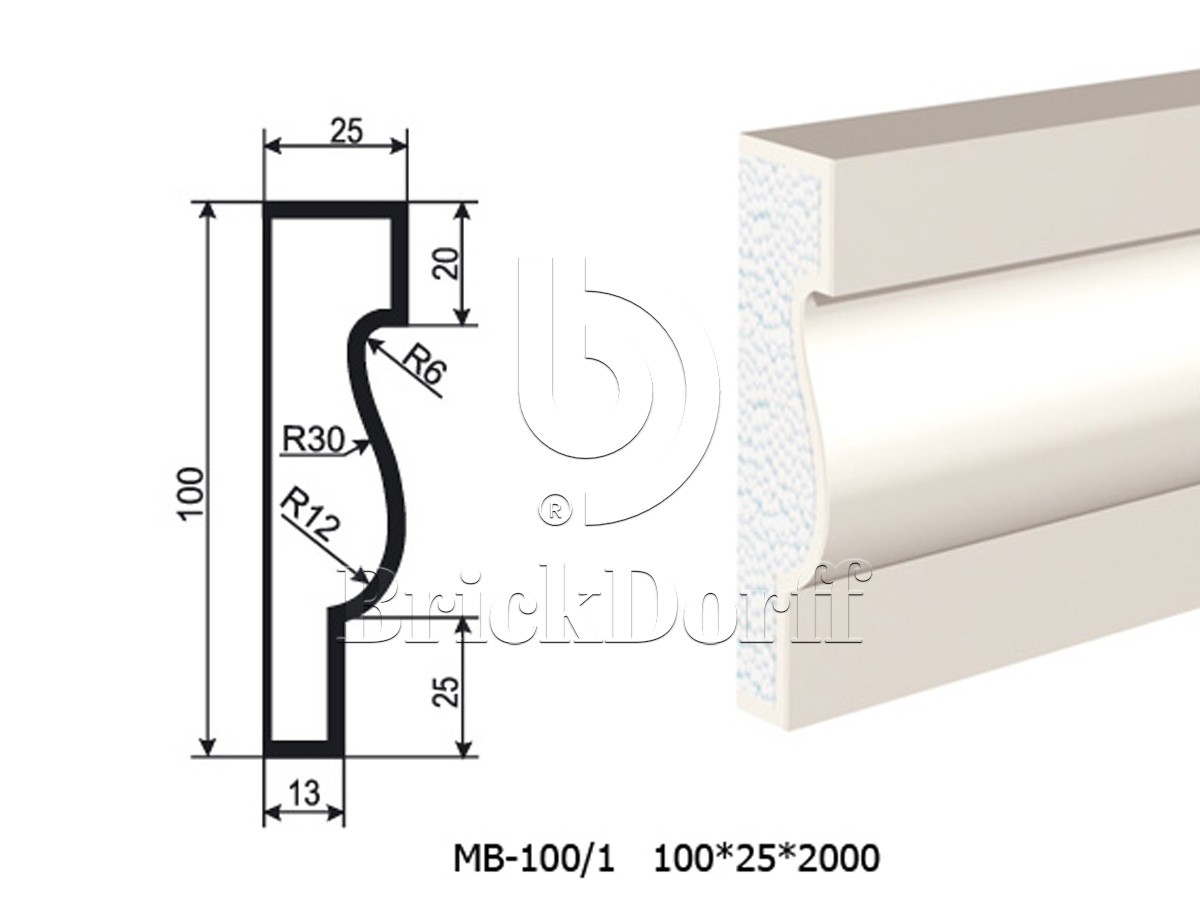 Молдинг для фасада - лепнина, декор из пенополистирола МВ-100/1 (МС-107) 100*25*2000 мм