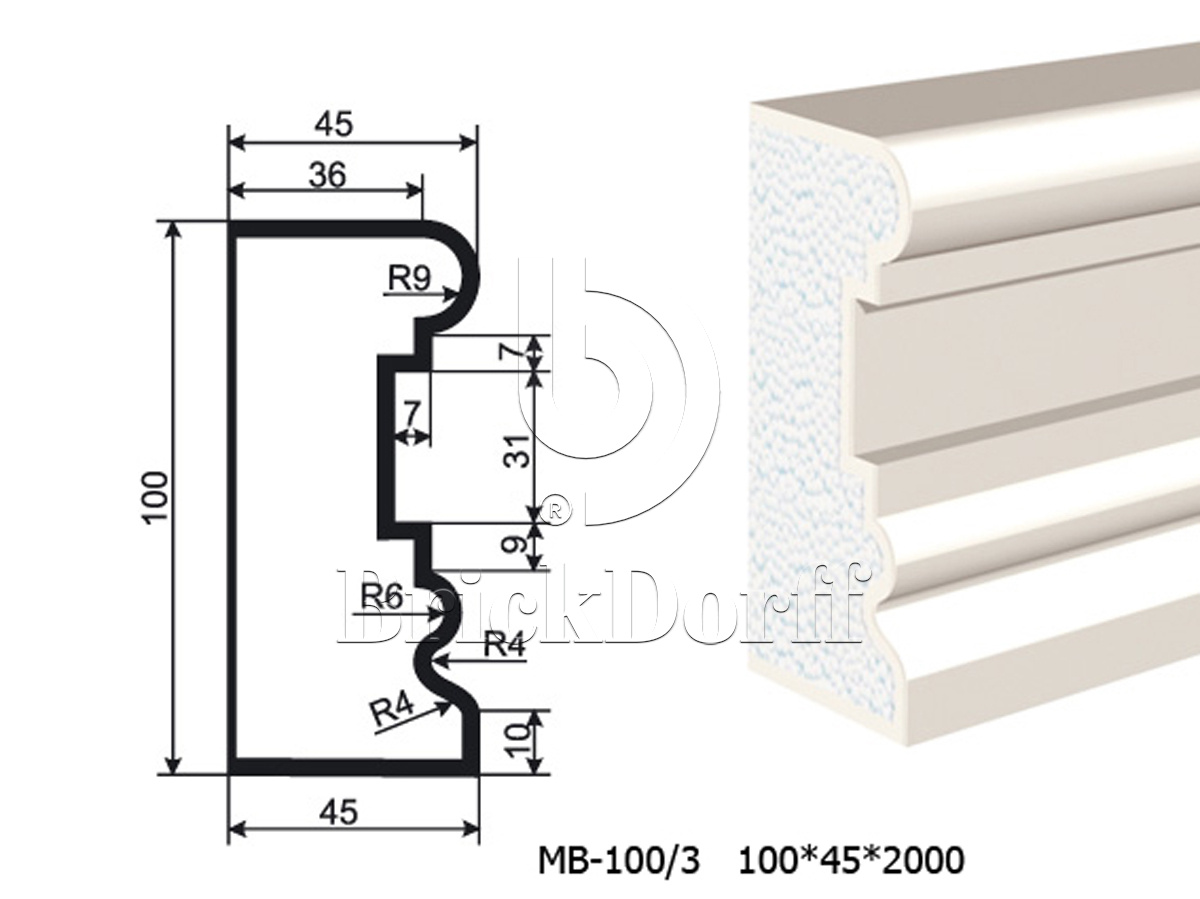 Молдинг для фасада - лепнина, декор из пенополистирола МВ-100/3 (МС-108) 100*45*2000 мм