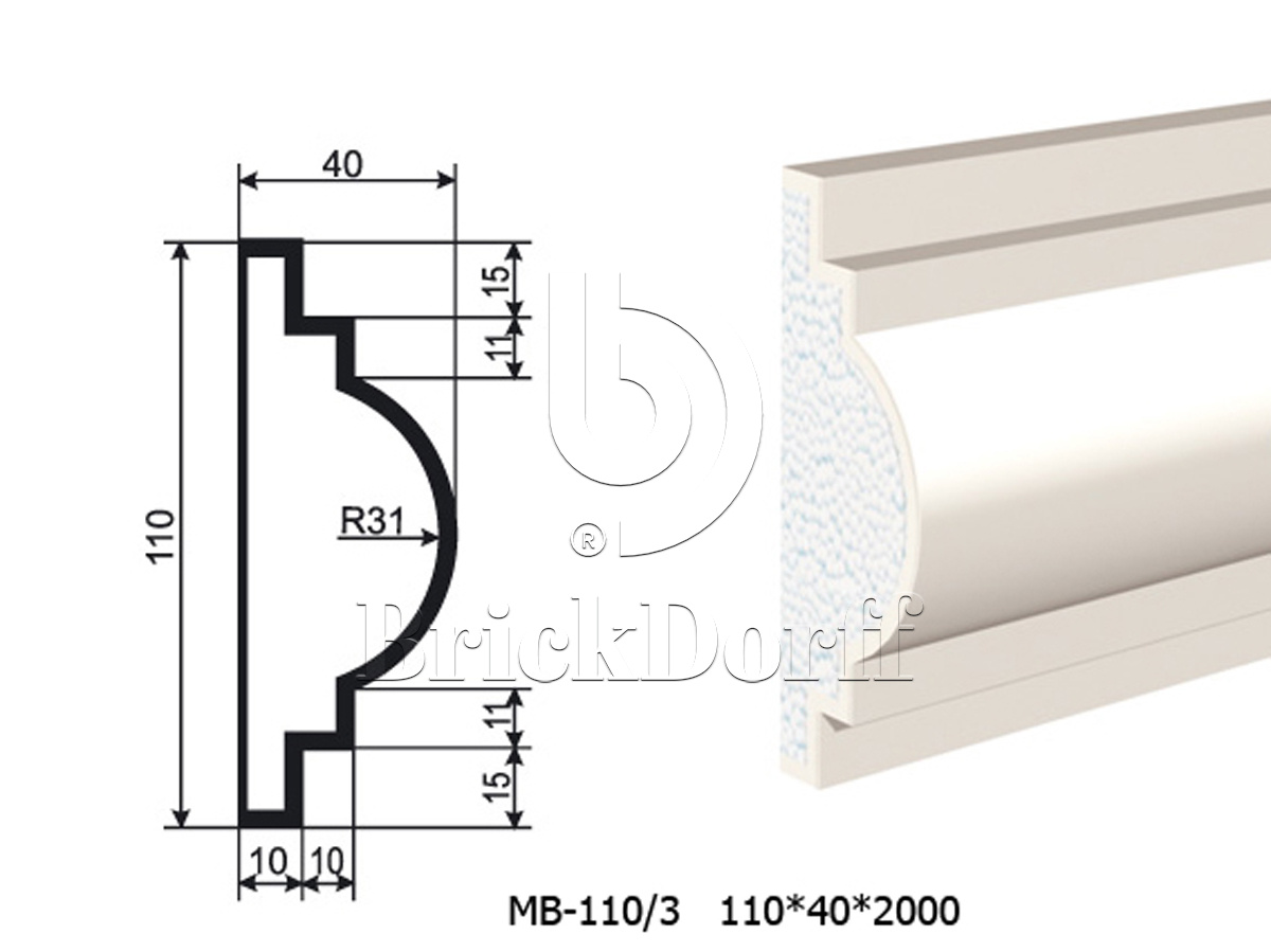 Молдинг для фасада - лепнина, декор из пенополистирола МВ-110/3 (МС-113) 110*40*2000 мм