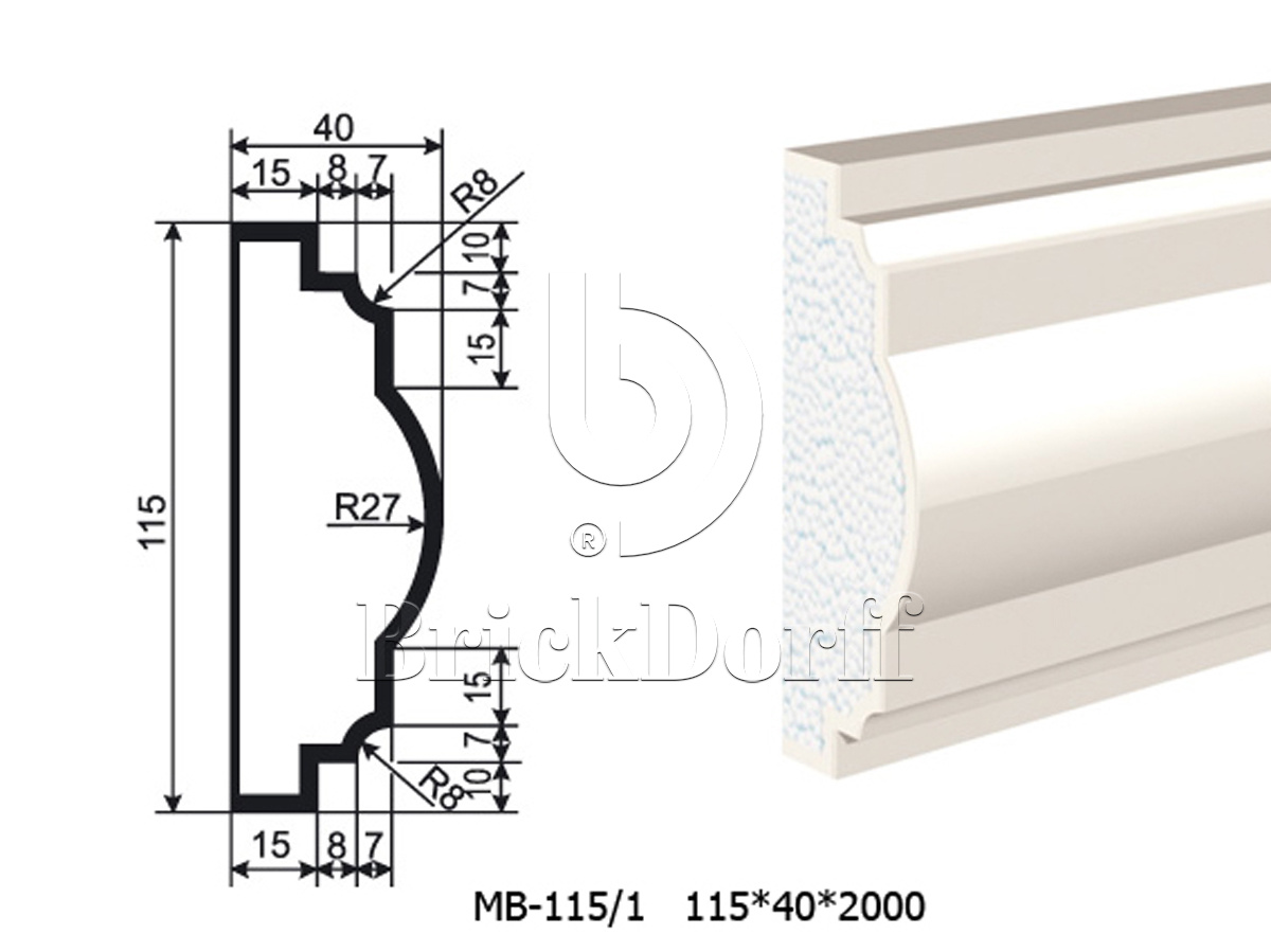 Молдинг для фасада - лепнина, декор из пенополистирола МВ-115/1 (МС-114) 115*40*2000 мм