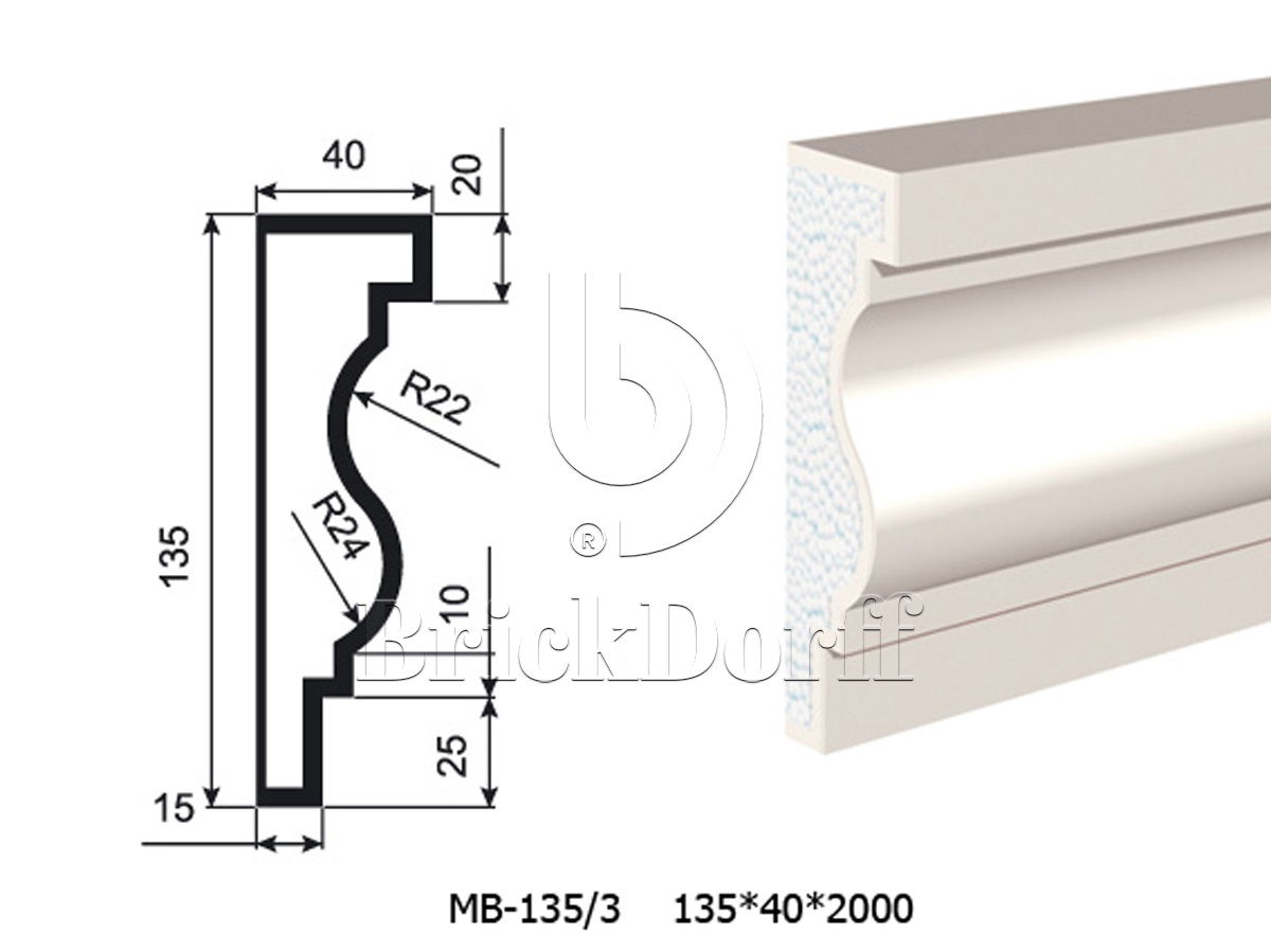 Молдинг для фасада - лепнина, декор из пенополистирола МВ-135/3 135*40*2000 мм