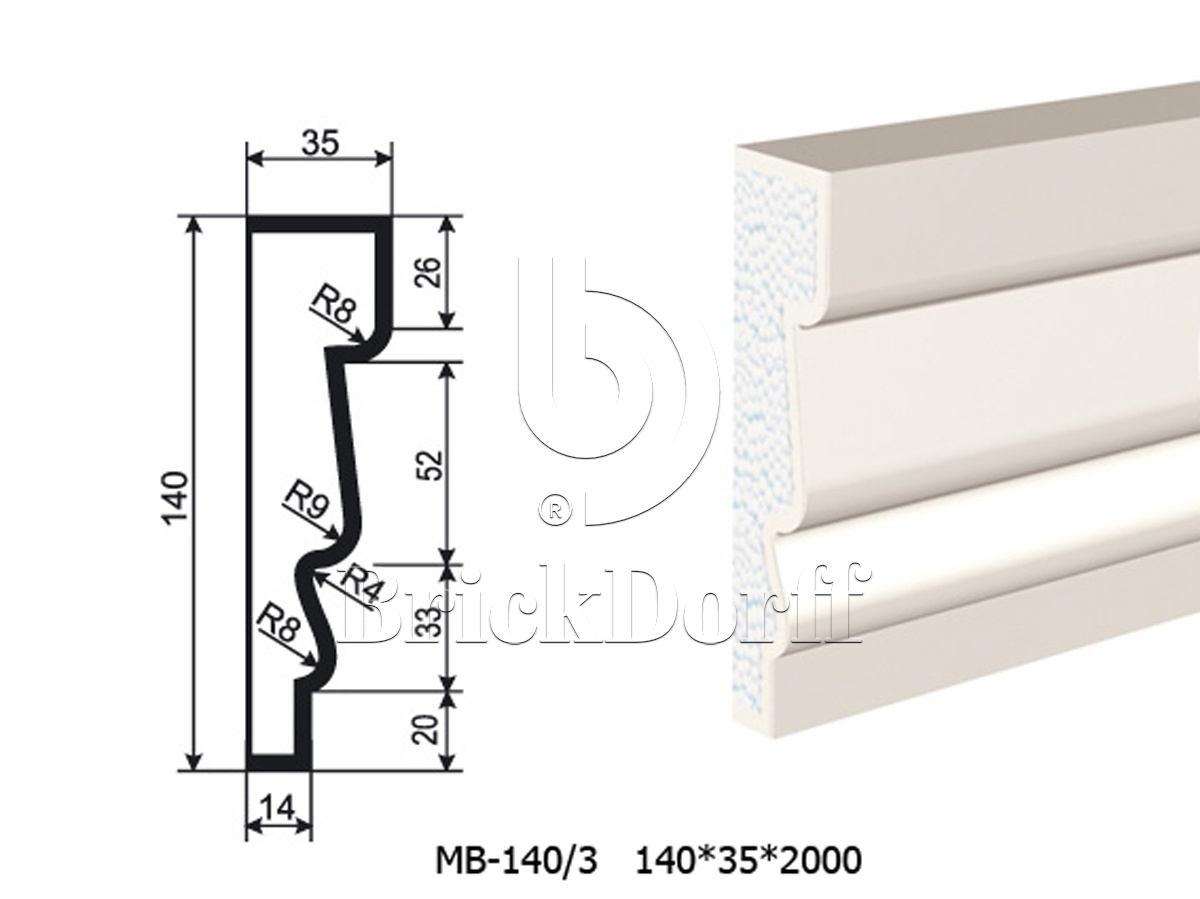 Молдинг для фасада - лепнина, декор из пенополистирола МВ-140/3 (МС-119) 140*35*2000 мм