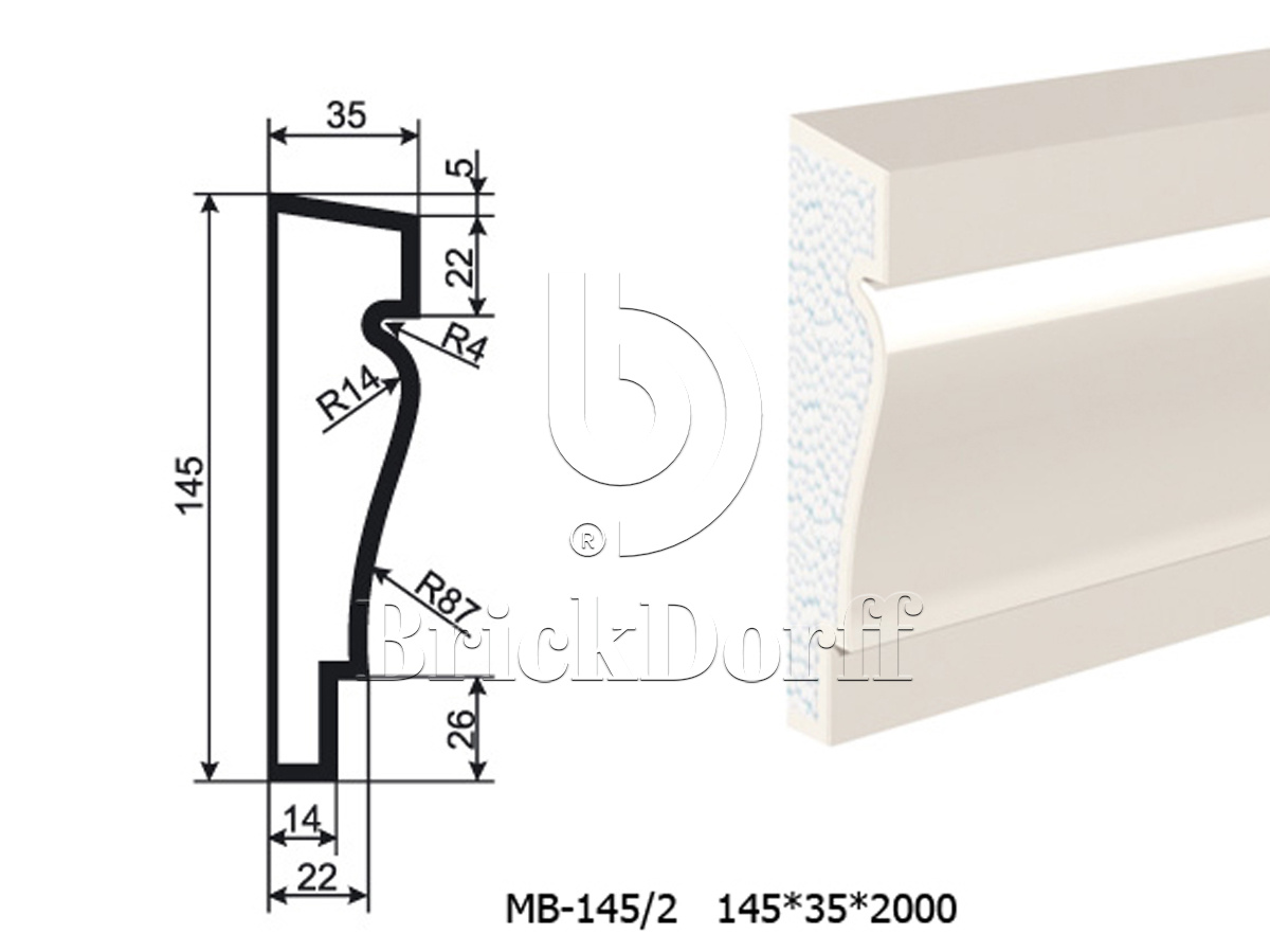 Молдинг для фасада - лепнина, декор из пенополистирола МВ-145/2 (МС-123) 145*35*2000 мм