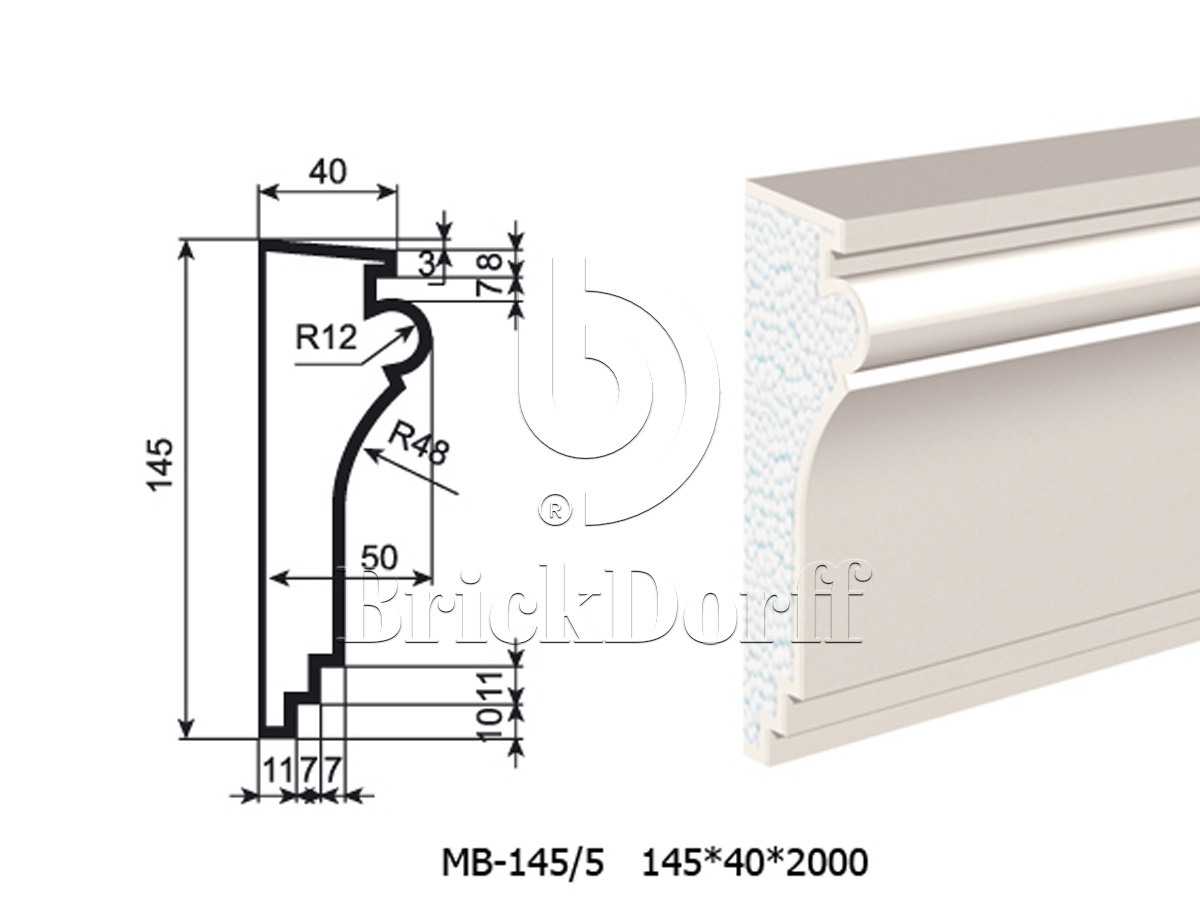 Молдинг для фасада - лепнина, декор из пенополистирола МВ-145/5 145*50*2000 мм