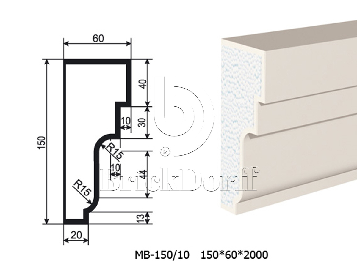 Молдинг для фасада - лепнина, декор из пенополистирола МВ-150/10 (МС-165) 150*60*2000 мм