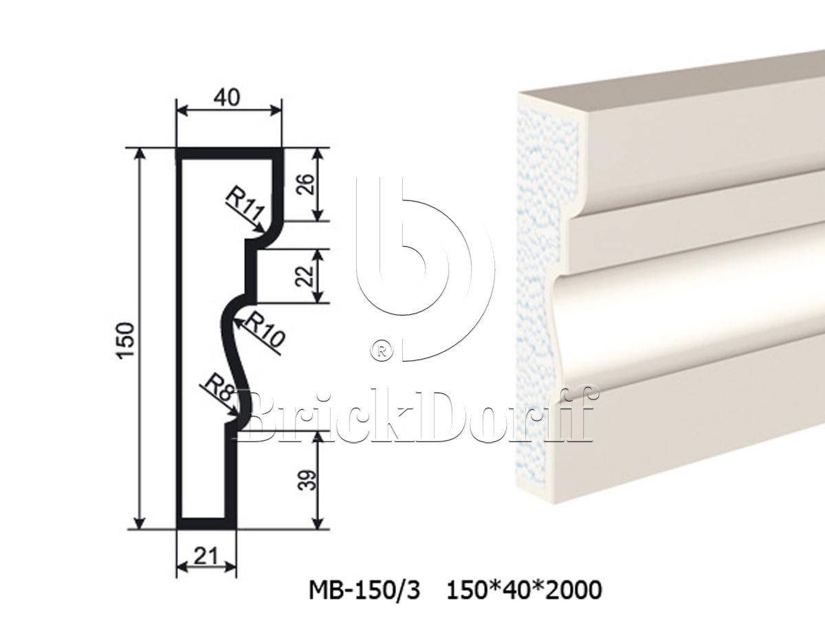 Молдинг для фасада - лепнина, декор из пенополистирола МВ-150/3 (МС-125) 150*40*2000 мм