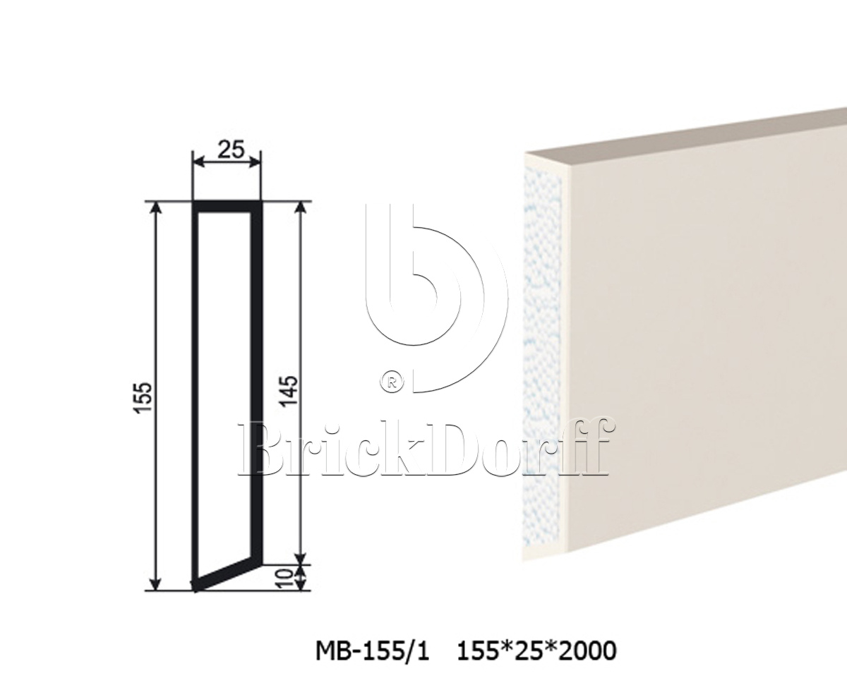 Молдинг для фасада - лепнина, декор из пенополистирола МВ-155/1 (МС-126) 155*25*2000 мм
