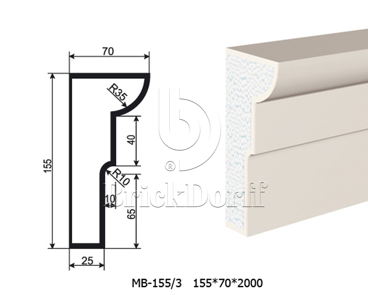 Молдинг для фасада - лепнина, декор из пенополистирола МВ-155/3 155*70*2000 мм