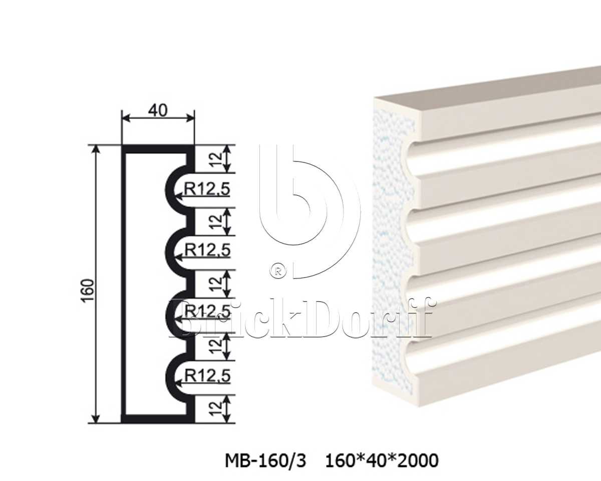 Молдинг для фасада - лепнина, декор из пенополистирола МВ-160/3 ( МС-163) 160*40*2000 мм