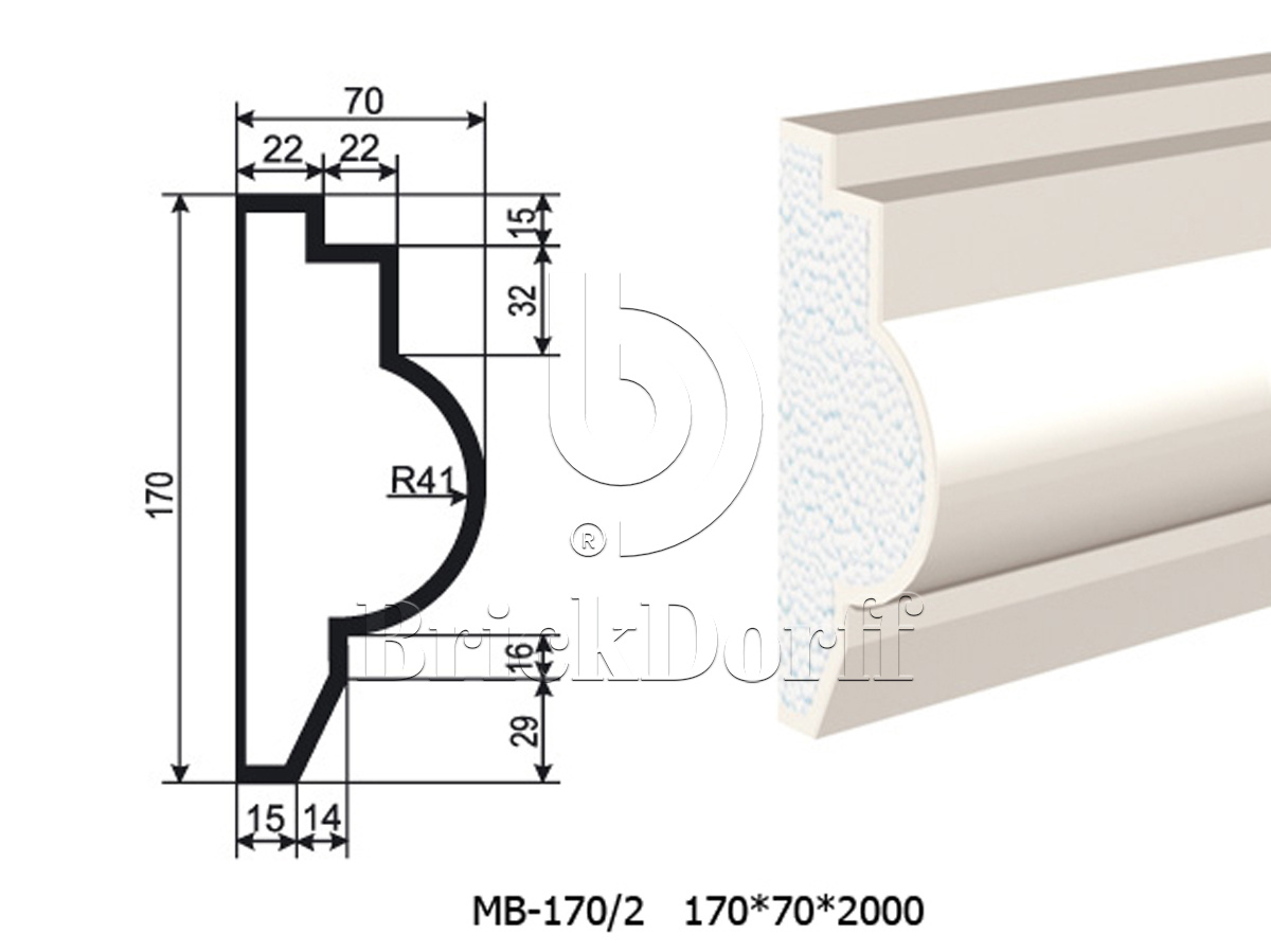 Молдинг для фасада - лепнина, декор из пенополистирола МВ-170/2 МС-133) 170*70*2000 мм