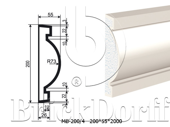 Молдинг для фасада - лепнина, декор из пенополистирола МВ-200/4 (МС-139) 200*55*2000 мм