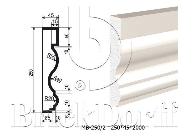 Молдинг для фасада - лепнина, декор из пенополистирола МВ-250/2 250*45*2000 мм