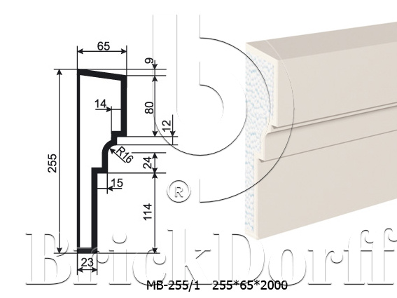 Молдинг для фасада - лепнина, декор из пенополистирола МВ-255/1 (МС-143) 255*65*2000 мм