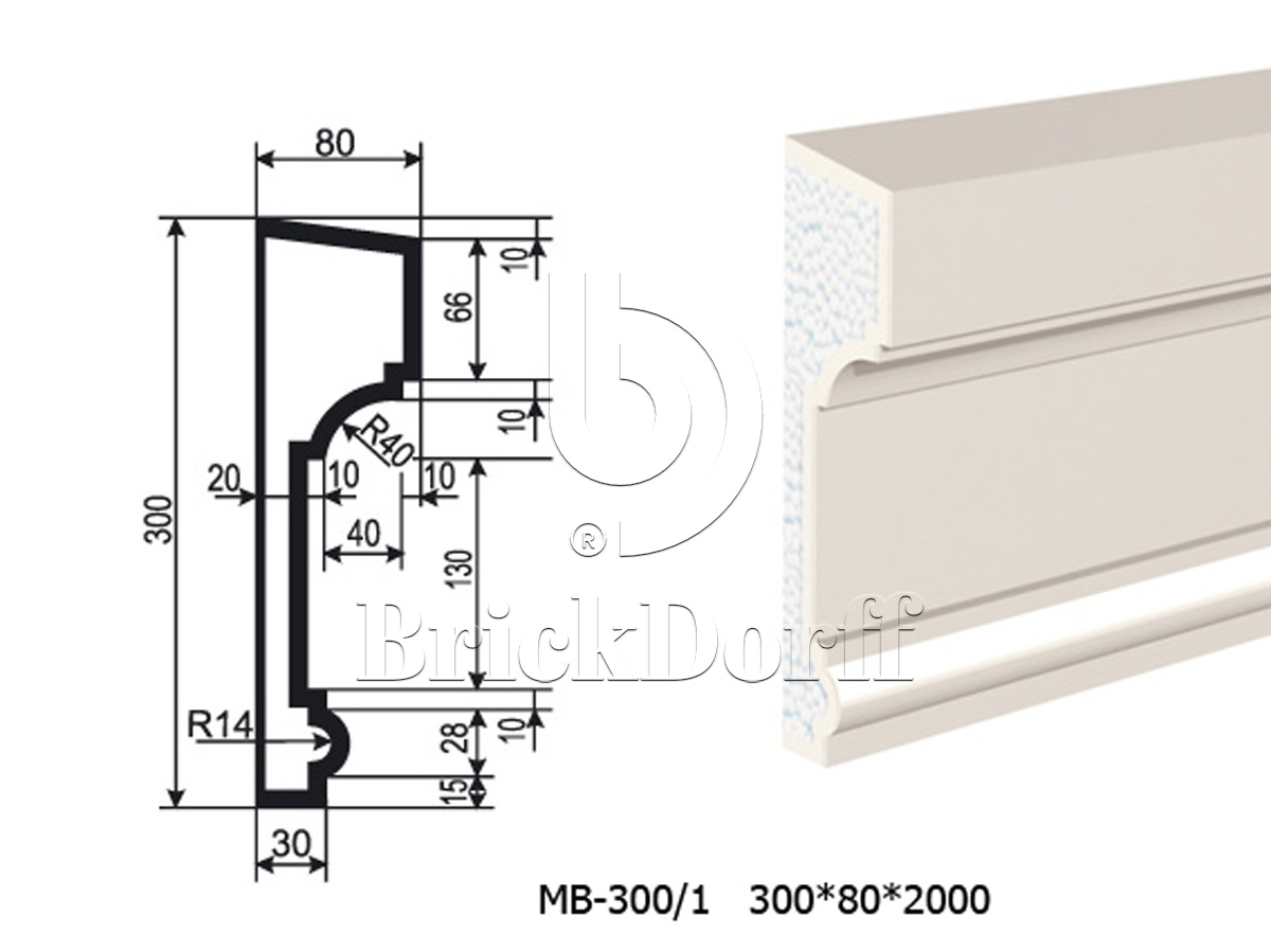 Молдинг для фасада - лепнина, декор из пенополистирола МВ-300/1 300*80*2000 мм