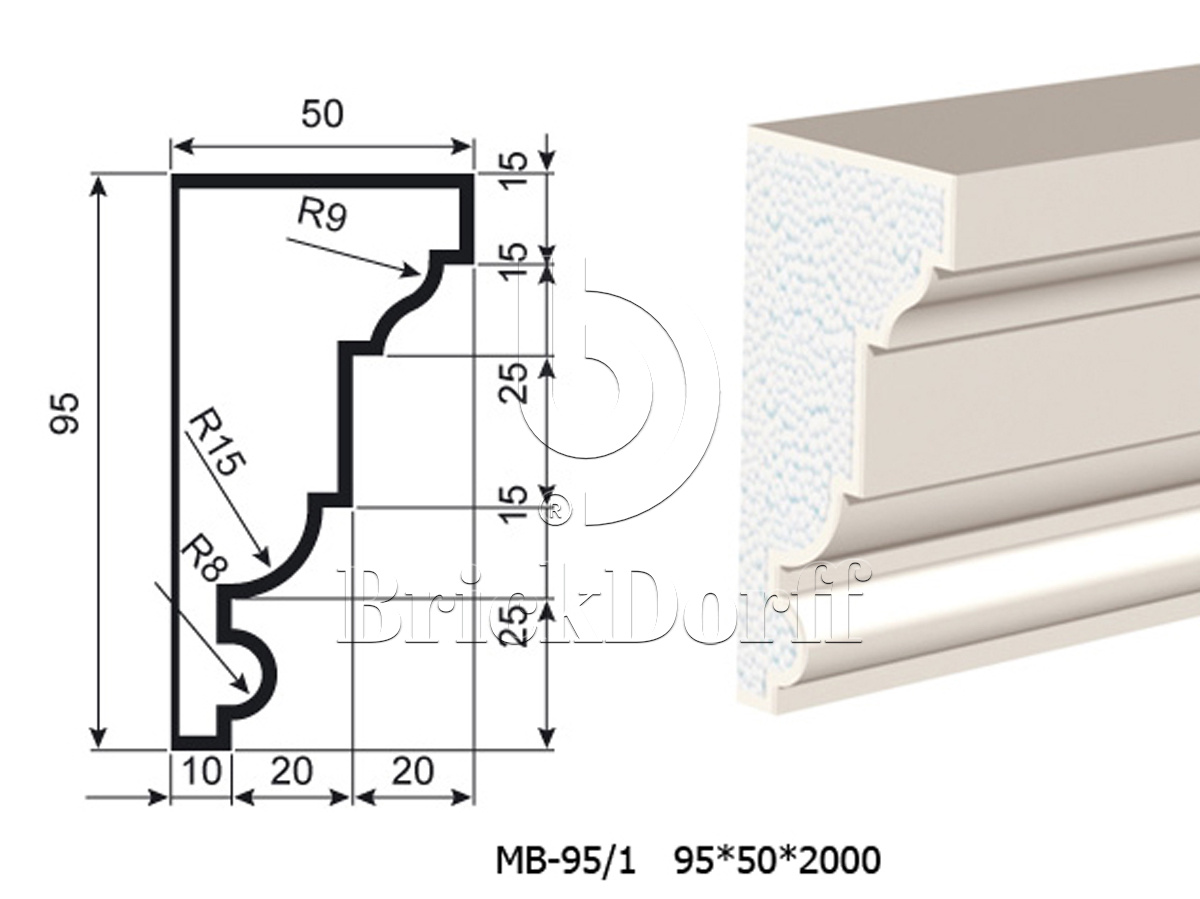 Молдинг для фасада - лепнина, декор из пенополистирола МВ-95/1 95*50*2000 мм