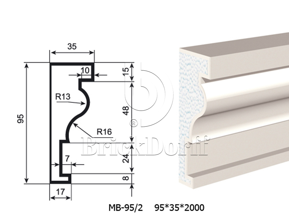 Молдинг для фасада - лепнина, декор из пенополистирола МВ-95/2 95*35*2000 мм