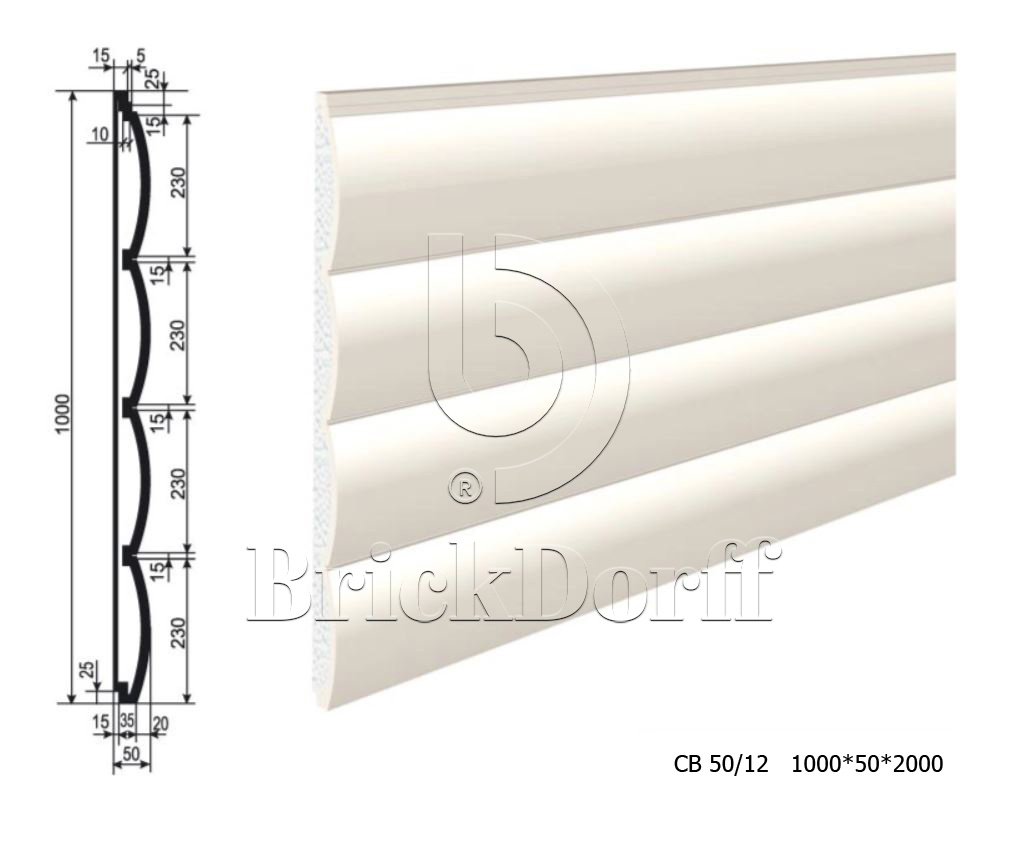 Панель утепления под покраску для фасада - изосайдинг из пенополистирола СВ-50/12 1000*50*2000 мм