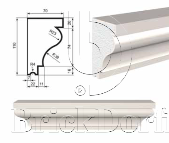 ПОДОКОННИК для Фасада и Интерьера - лепнина, декор из пенополистирола ПВ-110/3 110*70*2000 мм