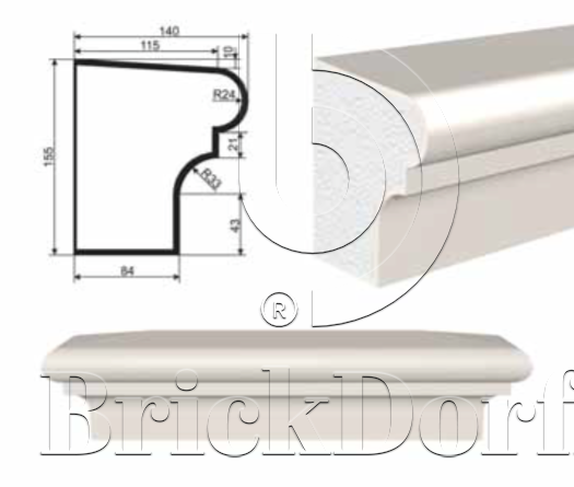 ПОДОКОННИК для Фасада и Интерьера - лепнина, декор из пенополистирола ПВ-155/2 155*140*2000 мм