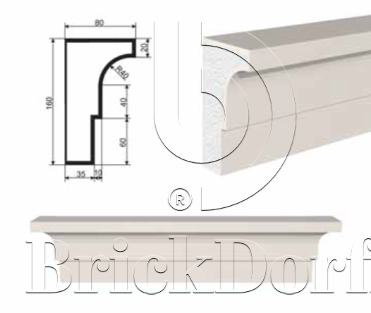 ПОДОКОННИК для Фасада и Интерьера - лепнина, декор из пенополистирола ПВ-160/1 160*80*2000 мм