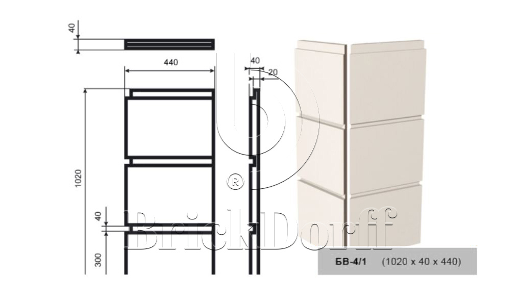 Рустовый камень (Боссажи) для отделки Фасада углы - лепнина, декор из пенополистирола БВ-4/1 1020*40*440 мм