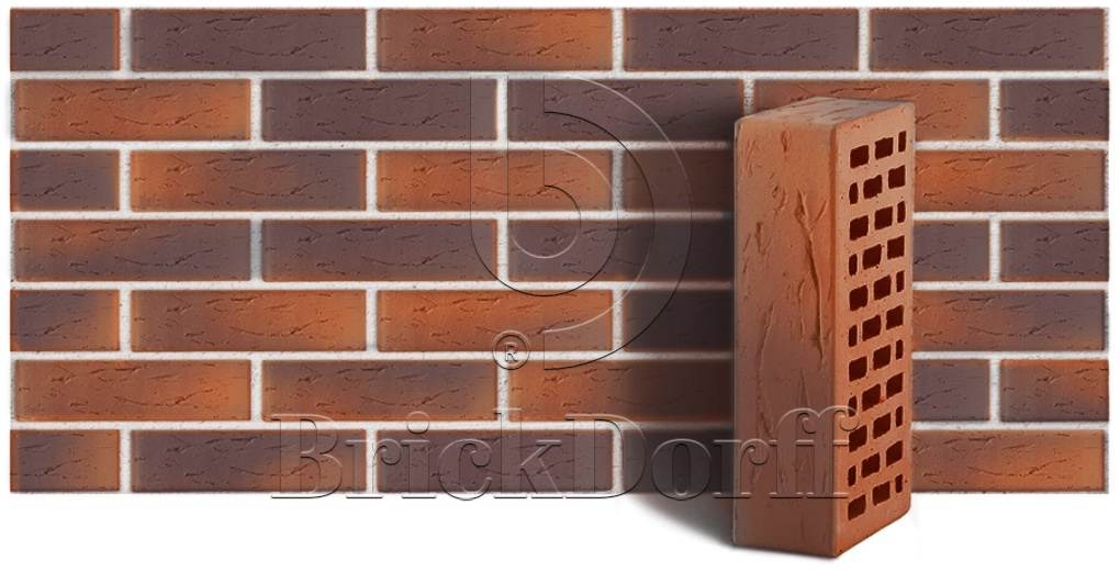 Кирпич лицевой керамический ЛСР пустотелый "Красный Флэшинг" рустик 250*120*65 мм