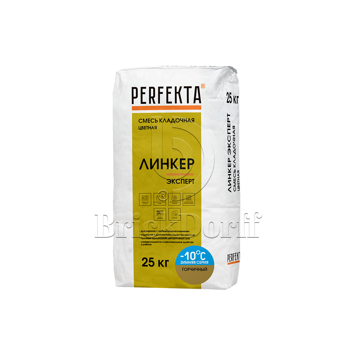 Кладочный раствор цветной для кирпича Perfekta Линкер Эксперт ЗИМНЯЯ серия горчичный, 25 кг