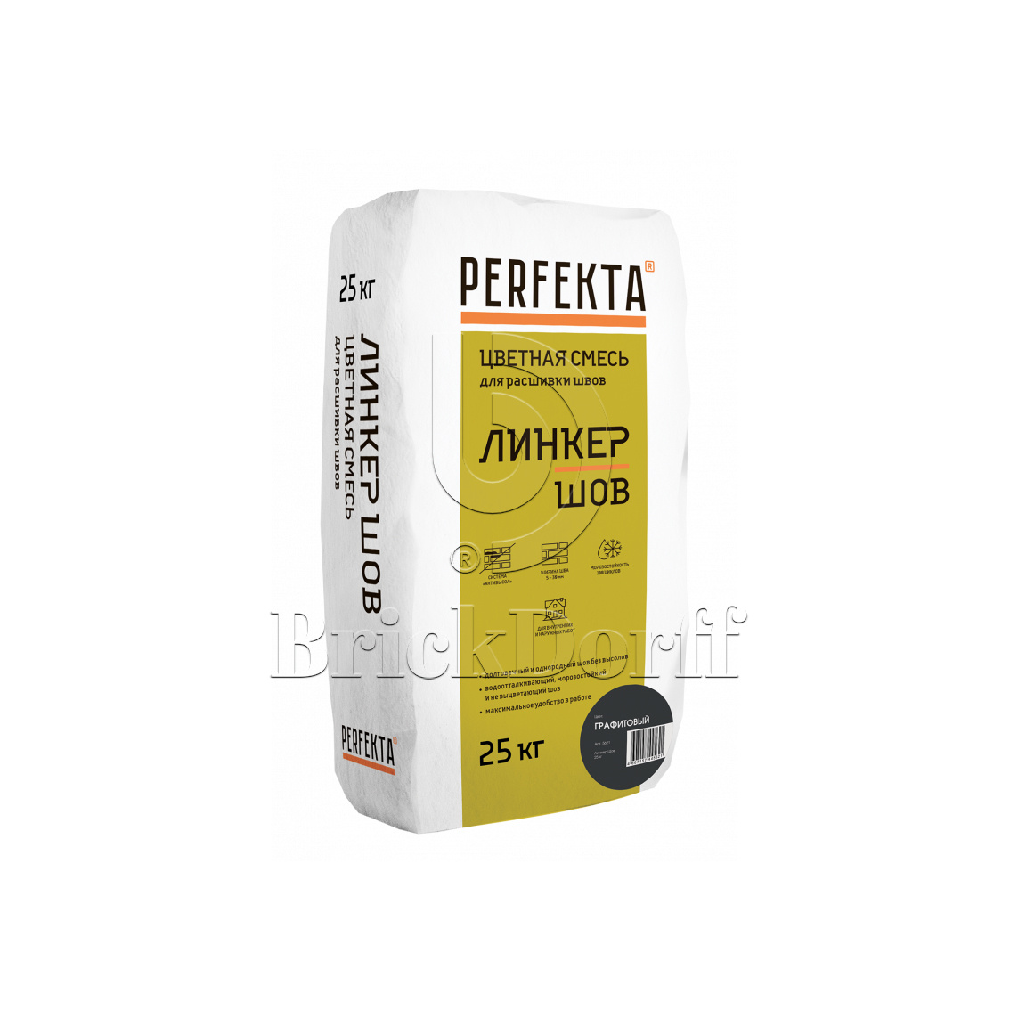Затирка для кирпичных швов Perfekta: Смесь для расшивки цветная Линкер Шов графитовый, 25 кг