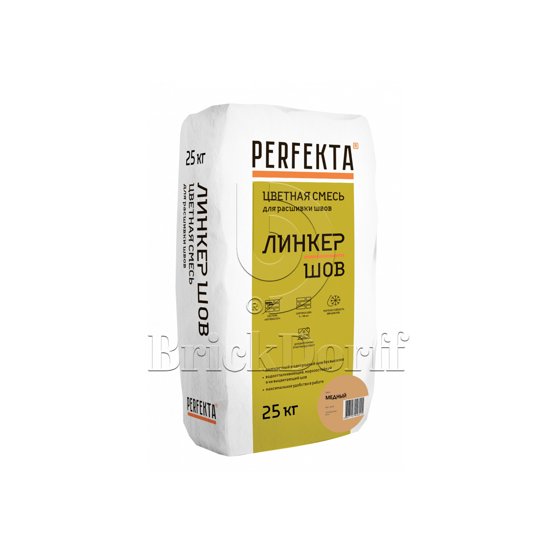 Затирка для кирпичных швов Perfekta: Смесь для расшивки цветная Линкер Шов медный, 25 кг