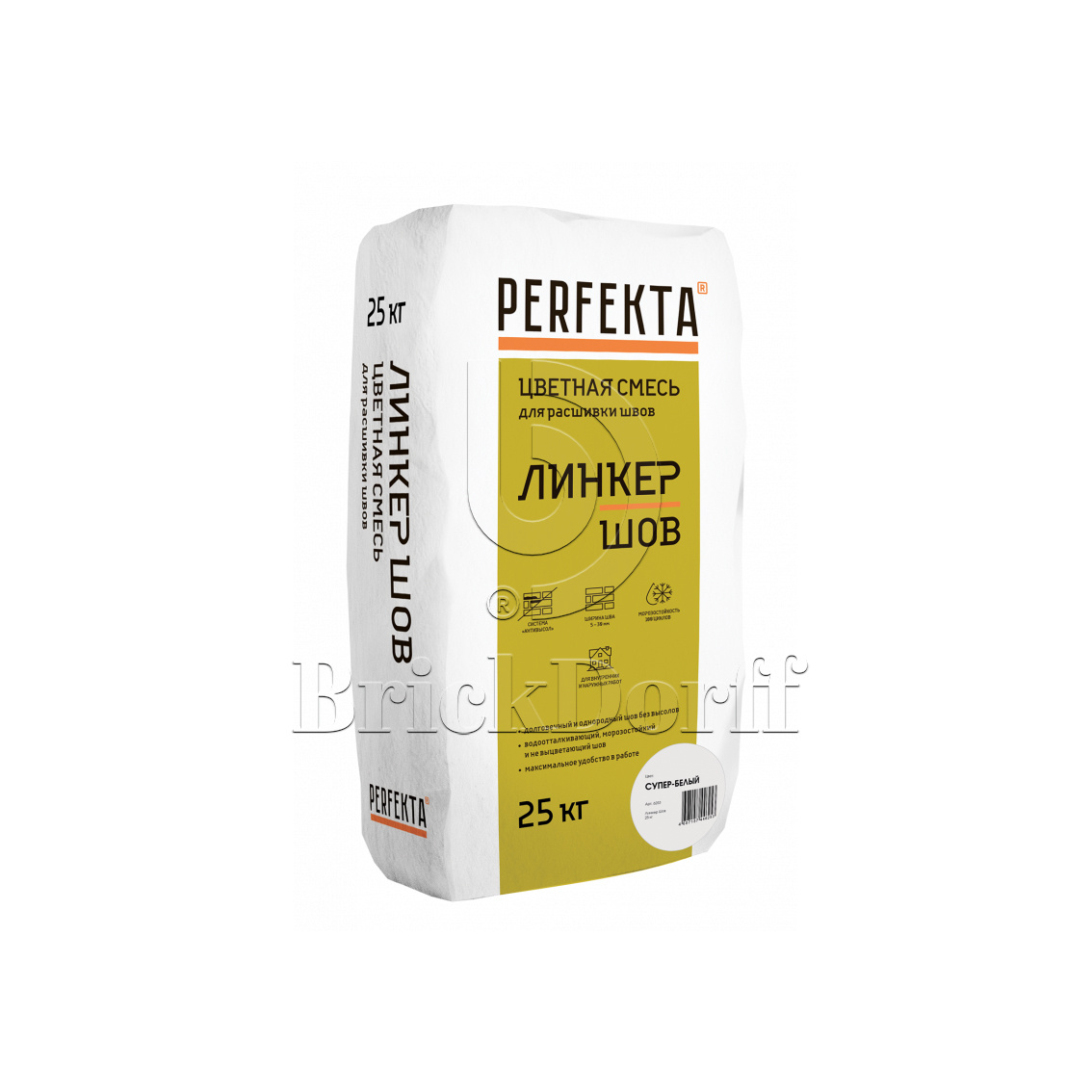 Затирка для кирпичных швов Perfekta: Смесь для расшивки цветная Линкер Шов супер белый, 25 кг