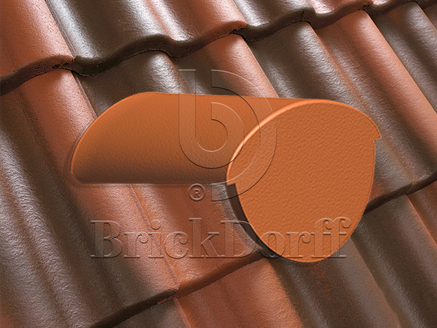Конечная коньковая черепица натуральная цементно-песчаная Antik кирпично-красный 29, Kriastak Baltic tile