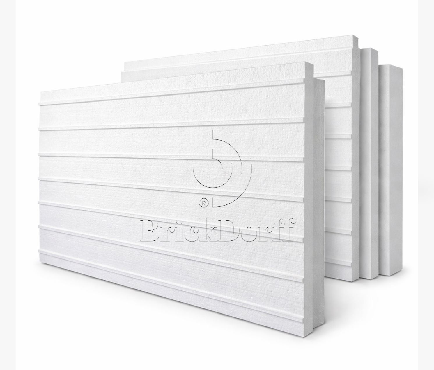 Фасадный ППС с интегрированными направляющими пазами под клинкерную плитку.