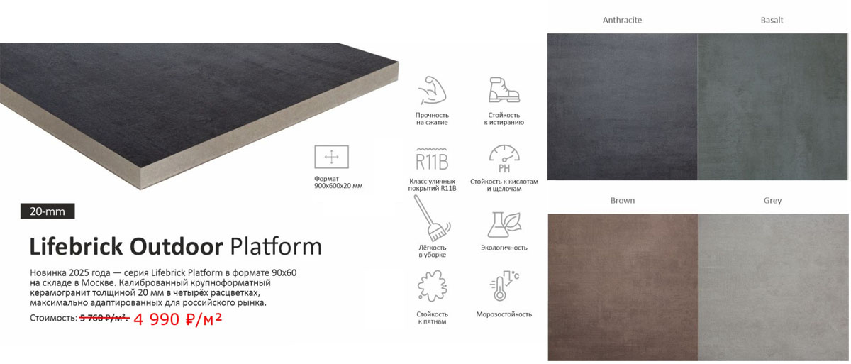 🚀 Успейте забронировать керамогранит Outdoor PLATFORM (формат 900×600×20 мм) по специальной цене!
